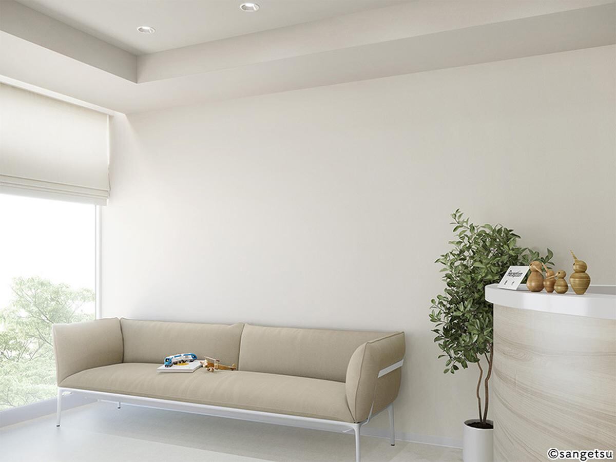 下地の動きをカバーしひび割れを軽減します。しっかりとした厚みもありますので、不陸隠蔽性にも優れています。